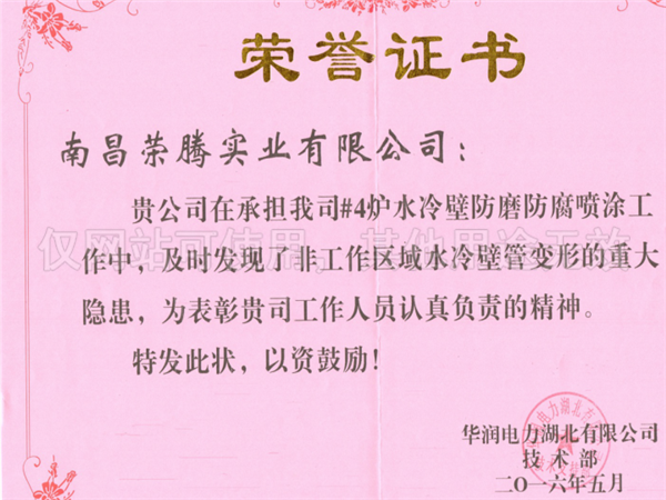 防磨防腐噴涂榮譽(yù)證書